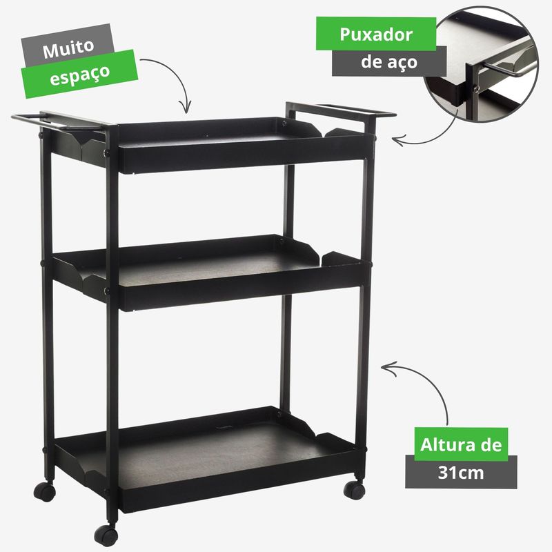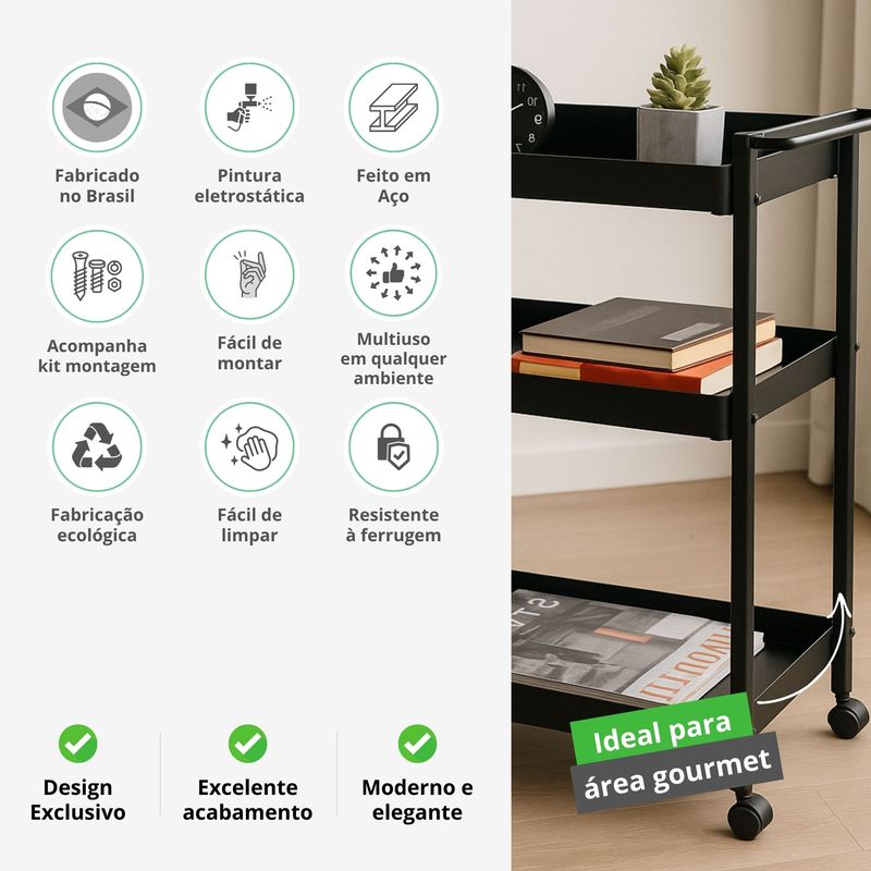 Carrinho Multiuso Aramado Metalon: Organização e Praticidade para Todos os Ambientes! O Carrinho Multiuso Aramado Metalon é a solução perfeita para otimizar espaços e facilitar a organização. Com rodízios para facilitar o deslocamento e um design moderno, ele pode ser usado na cozinha, escritório, lavanderia ou banheiro. ✨ Benefícios e Diferenciais ✅ Versátil e ideal para diversas funções: Pode ser usado para armazenar utensílios, produtos de limpeza, livros e muito mais. ✅ Estrutura resistente e com rodízios: Fácil de mover e suporta diferentes tipos de carga. ✅ Compacto e eficiente para organização: Perfeito para pequenos espaços, otimizando a arrumação. ✅ Fácil de montar e utilizar: Montagem prática e sem complicações. ✅ Design moderno e funcional: Combina com diversos ambientes e estilos de decoração. 🏡 Como Usar? Monte o carrinho seguindo as instruções do fabricante. Escolha o ambiente ideal: Utilize na cozinha, escritório, lavanderia ou banheiro. Organize seus itens: Armazene utensílios, produtos ou acessórios conforme sua necessidade. Mantenha a limpeza: Limpe regularmente com um pano úmido para conservar a estrutura. Desloque com facilidade: Utilize os rodízios para movê-lo sempre que precisar. 🌟 Para Quem é Indicado? ✔ Quem busca otimizar espaço e manter tudo organizado. ✔ Pessoas que precisam de mobilidade na organização da casa. ✔ Ideal para apartamentos e espaços compactos. ✔ Quem deseja um item versátil e funcional para diferentes usos. 📝 Perguntas Frequentes (FAQ) 1. O carrinho suporta peso elevado? Sim! Ele possui uma estrutura reforçada que garante resistência. 2. Os rodízios travam para maior segurança? Sim! O carrinho possui rodízios com trava para estabilidade quando necessário. 3. A montagem é difícil? Não! O carrinho vem com instruções claras para montagem simples e rápida. 4. Pode ser usado em áreas úmidas, como banheiros? Sim! Seu material resistente permite o uso em áreas úmidas sem problemas. 5. Qual a capacidade de armazenamento? O carrinho tem prateleiras espaçosas para acomodar diversos itens sem ocupar muito espaço. Garanta agora o Carrinho Multiuso Aramado Metalon e transforme a organização da sua casa! 📦 Frete rápido para todo o Brasil!