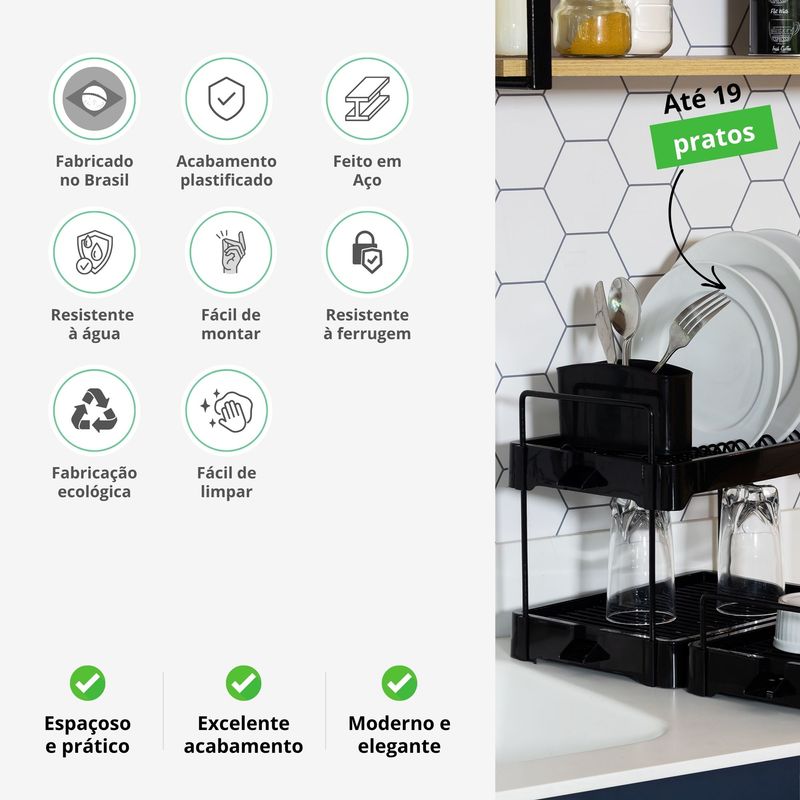 Escorredor de Louça Grande Cozinha Prato Copo Talheres