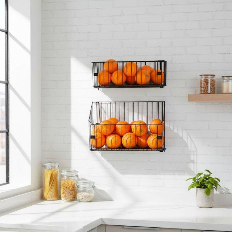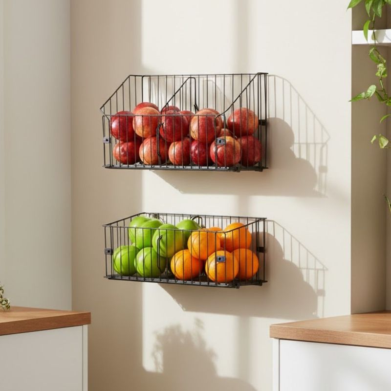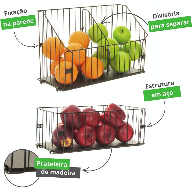 Fruteira de Parede Aramado Cozinha Cesto Frutas Kit 1P e 1G