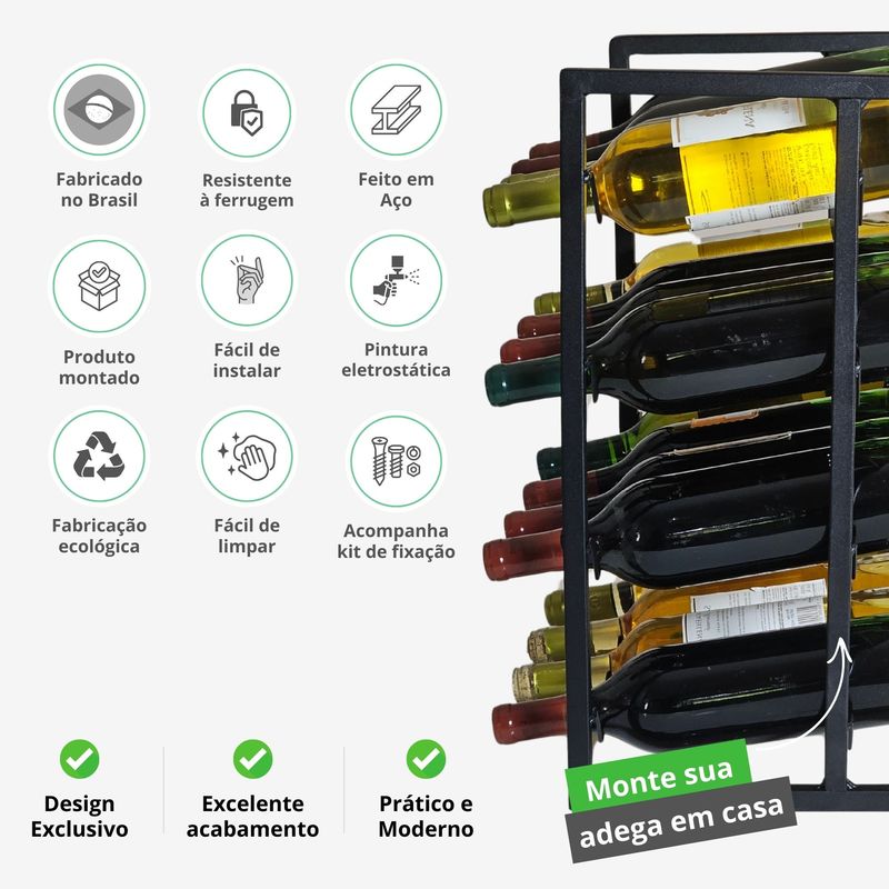 - Capacidade para 16 garrafas: ideal para quem quer organizar e exibir sua coleção com charme.