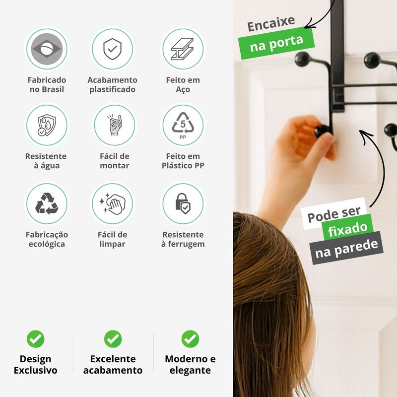 ✔ 10 ganchos espaçosos: ideal para bolsas, toalhas, casacos e roupas.