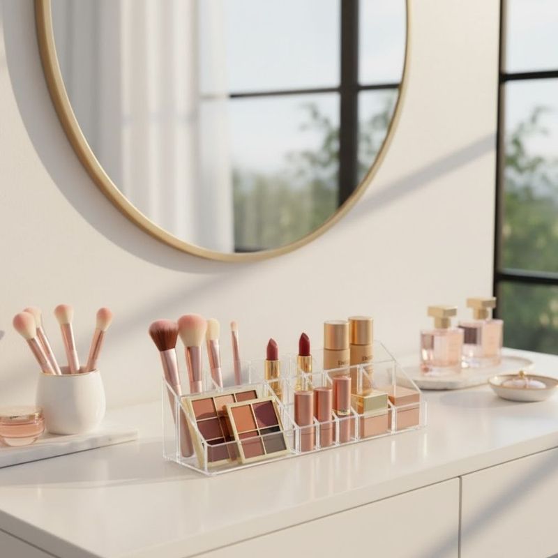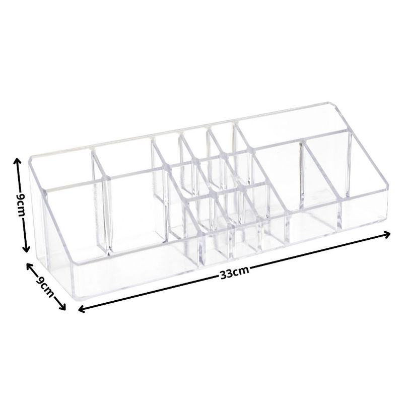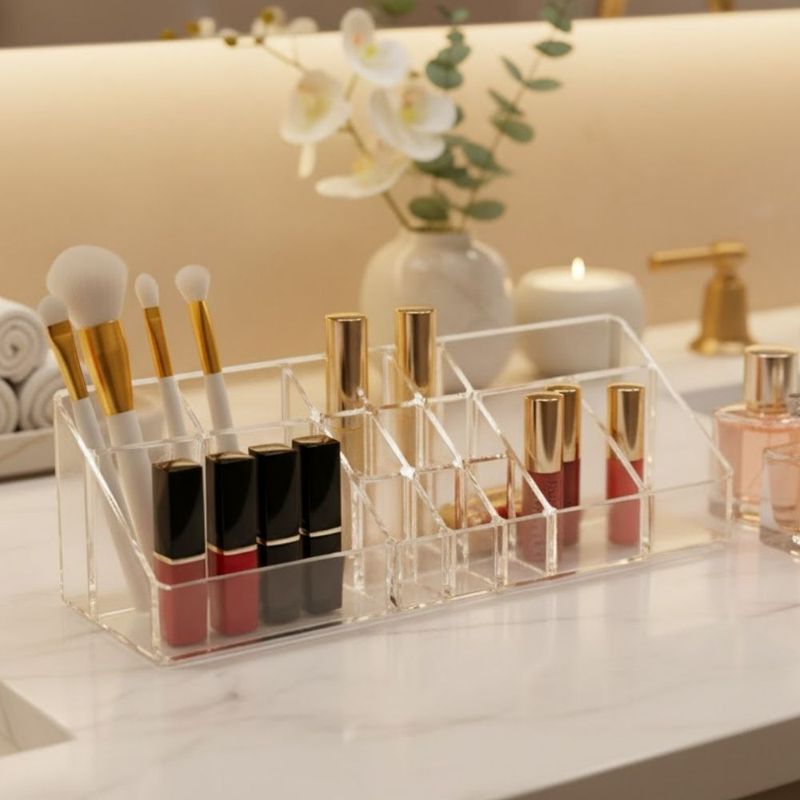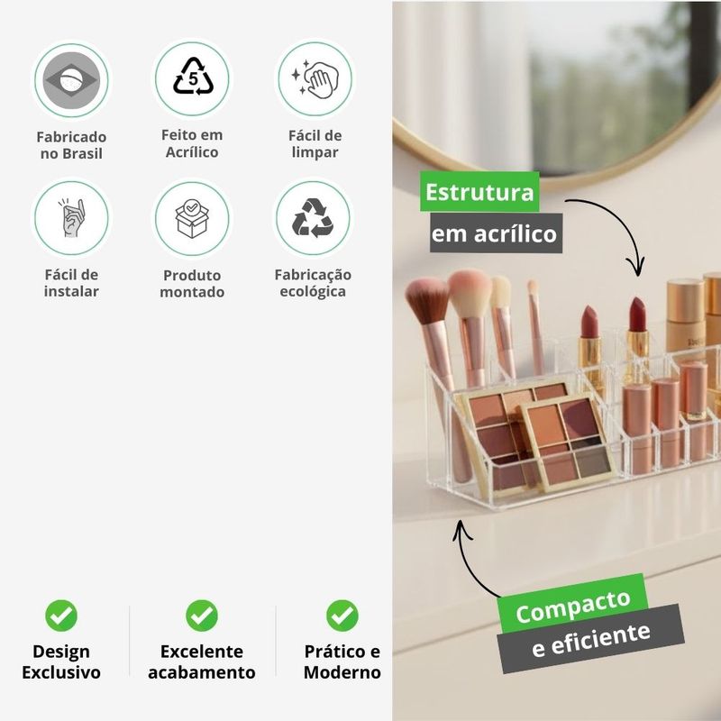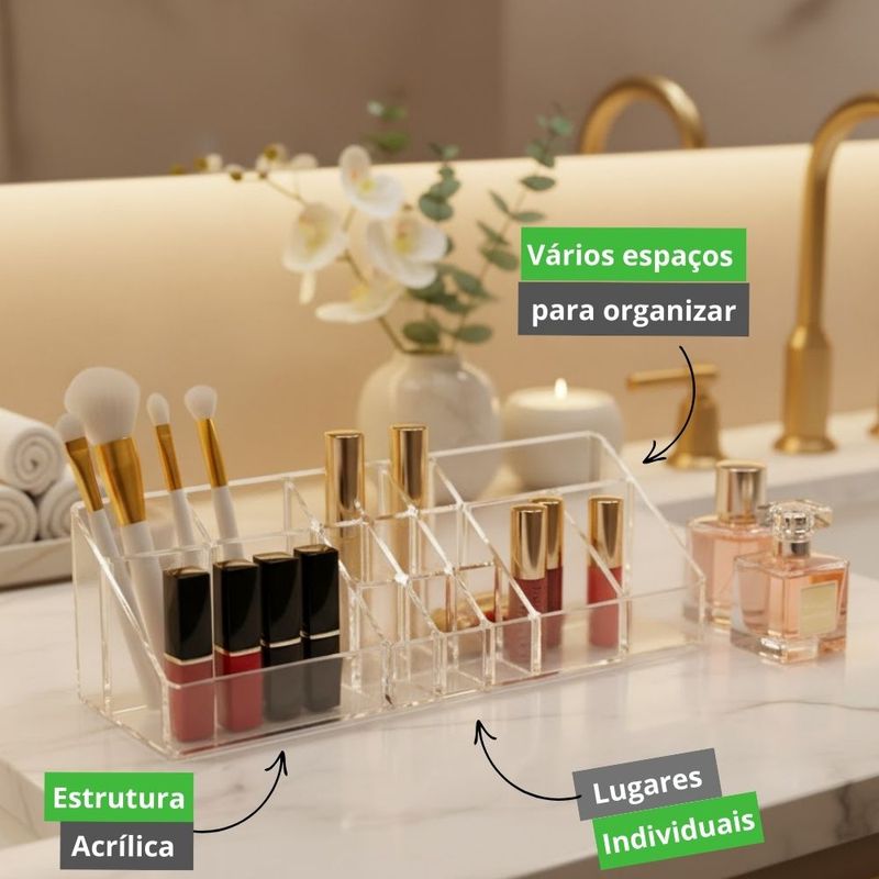 A organização do banheiro é um dos detalhes que mais chamam a atenção quando vamos à algum lugar, seja uma casa ou um estabelecimento. Embora alguns priorizem a organização da cozinha e outros, da sala ou do quarto, é justamente o banheiro o ambiente que mais precisa de soluções práticas para manter tudo em ordem. Geralmente, o banheiro é um cômodo pequeno e precisa de organizadores multiuso ou suportes práticos e resistentes a umidade para organizar toalhas, papel higiênico, escova de dentes e cosméticos, além dos aramados para frascos de shampoo e condicionador. São esses organizadores de banheiro que vão facilitar o dia a dia, otimizar espaços e auxiliar na tarefa de transformar seu banheiro com conforto e praticidade. O primeiro passo é reconhecer que o tamanho do cômodo não é razão para fazer da organização do banheiro um desafio! O Porta Maquiagens Grande é um item multifuncional que pode ser utilizado e otimizar espaços no guarda roupa, no armário de cozinha e na bancada do banheiro, agrupando as miudezas e deixando a organização mais eficiente e evitando que algum item se perca. Este modelo de Porta Maquiagem Grande, em acrílico, facilita a visualização dos objetos e pode ser utilizado em diferentes ambientes, sendo a alternativa ideal para quem tem pouco espaço em casa.Confira dicas para organizar o banheiro: https://blog.aramado.com/organizacao-do-banheiro/ *Respeite as especificações de uso (ex.: peso suportado) descritas nas características do produto.